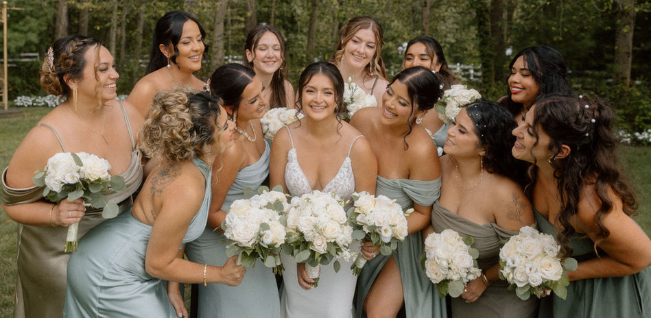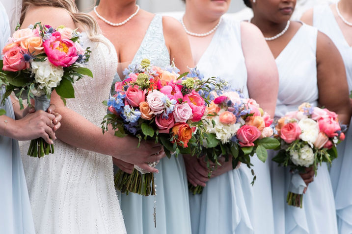 A cohesive design should span throughout bridesmaids (or men), flower girls & ring bearers, corsages and handhelds. We will discuss your needs and access the best options for your entire wedding party.